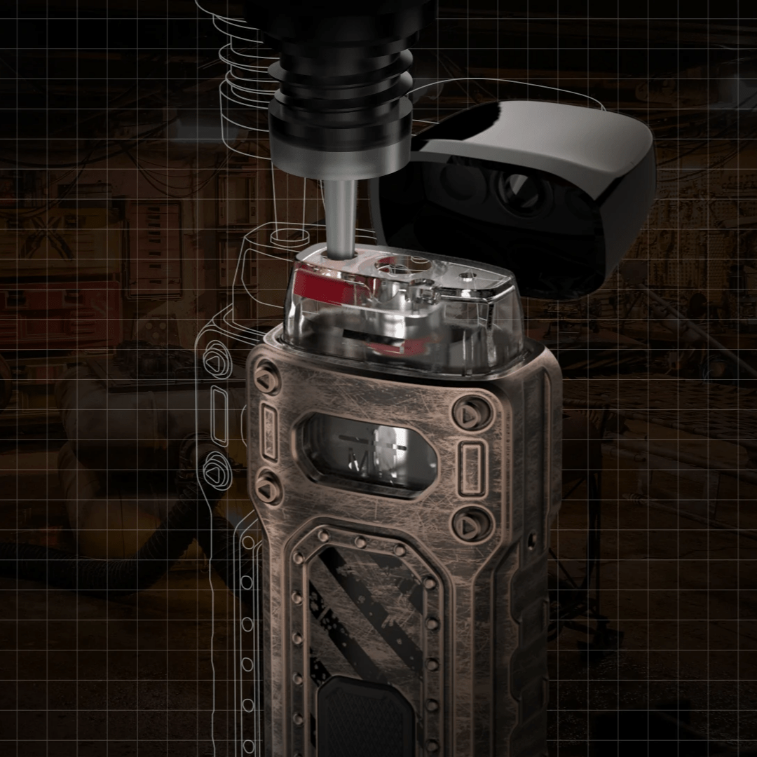 بدنهی آلومینیومی این پاد سبک منحصربهفردی به آن میبخشد و خطوط مورب روی سطح بدنه ظاهری فوقمدرن و درعین حال اصیل به آن میدهد. برشها و تابهای طراحیشده در امتداد دو ضلع پاد صرفاً جنبهی زیبایی ندارند، بلکه آن را کاملاً ضدلغزش میکنند و جلوی افتادنهای احتمالی آن را میگیرند. این دستگاه قابلیت کار با تمام انواع کویلهای نوع G (8/0، 0/1 و 2/1 اهم) CALIBURN را دارد که این بهلحاظ عملکرد و طعم استانداردی عالی بهشمار میرود و رضایت هردو گروه کاربران MTL و RDL را فراهم میکند. در این دستگاه یک سیستم ارتعاشی تعبیه شده که نشاندهندهی حالات مختلف پاد (ولتاژ کم، زمان پاف اضافی، مدار باز و اتصال پاد) است.